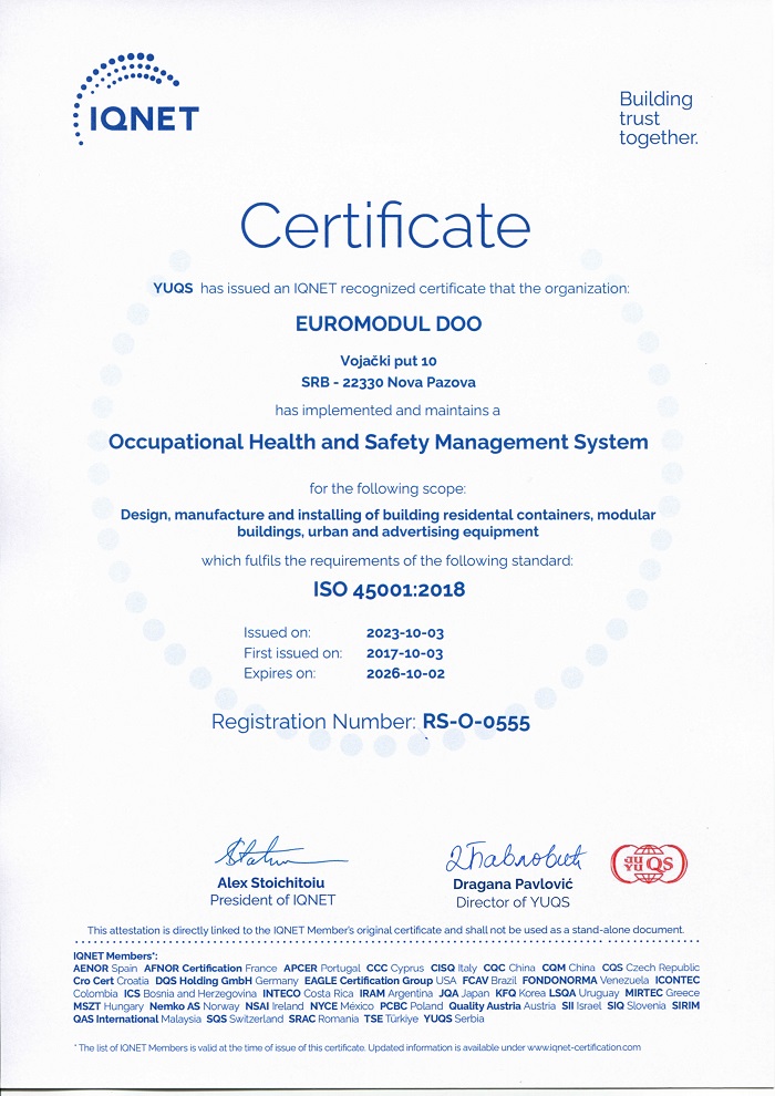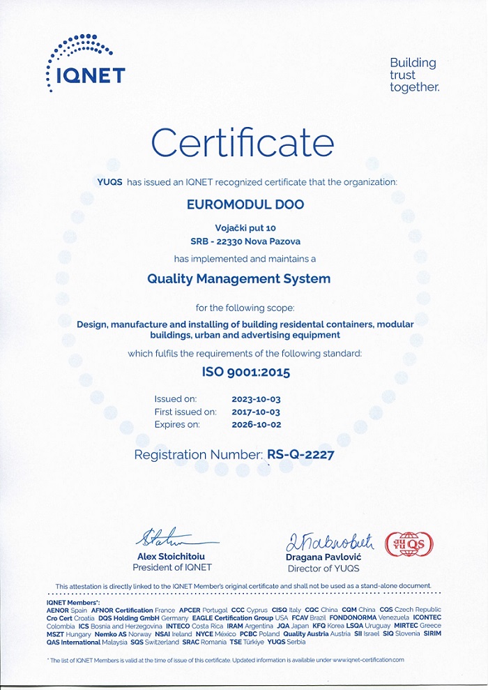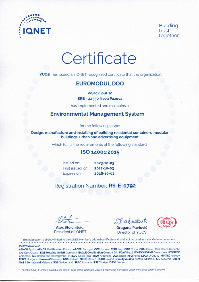 EUROmodul d.o.o. Fabrik der Container Nova Pazova beginnt mit der Arbeit im Jahre 2005 durch die „Green-field“ Investition für die Errichtung der Fabrik für Produktion der Container in Nova Pazova und im Jahre 2006 beginnt die Produktion.