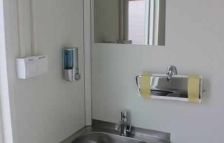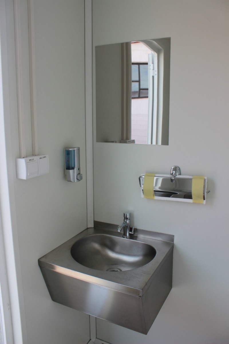 Toaleti imaju ugrađenu EUROmodul anti-vandal sanitarnu opremu od nerđajućeg čelika INOX AISI 304 (wc školjka, vodokotlič, umivaonici, ogledala)