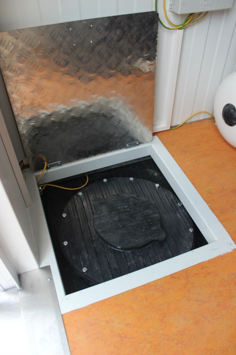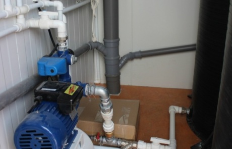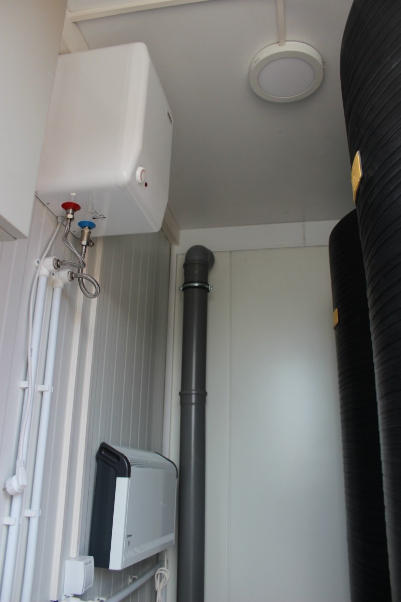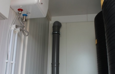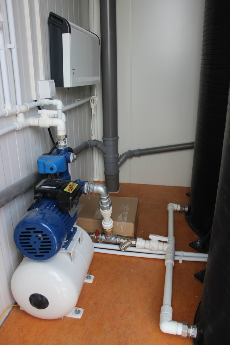 U tehničkom prostoru koji se nalazi između dva odvojena ulaza, postavljene su pumpe za povećanje pritiska vode kao i taknkovi za tehničku vodu. Tank za odvod fekalija nalazi se u podu i predstavlja celinu sa kontejnerom.