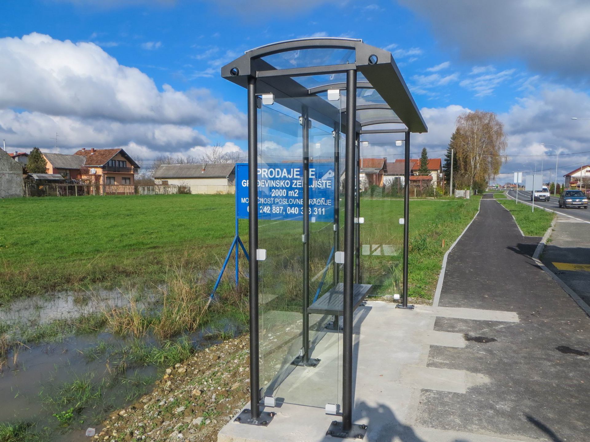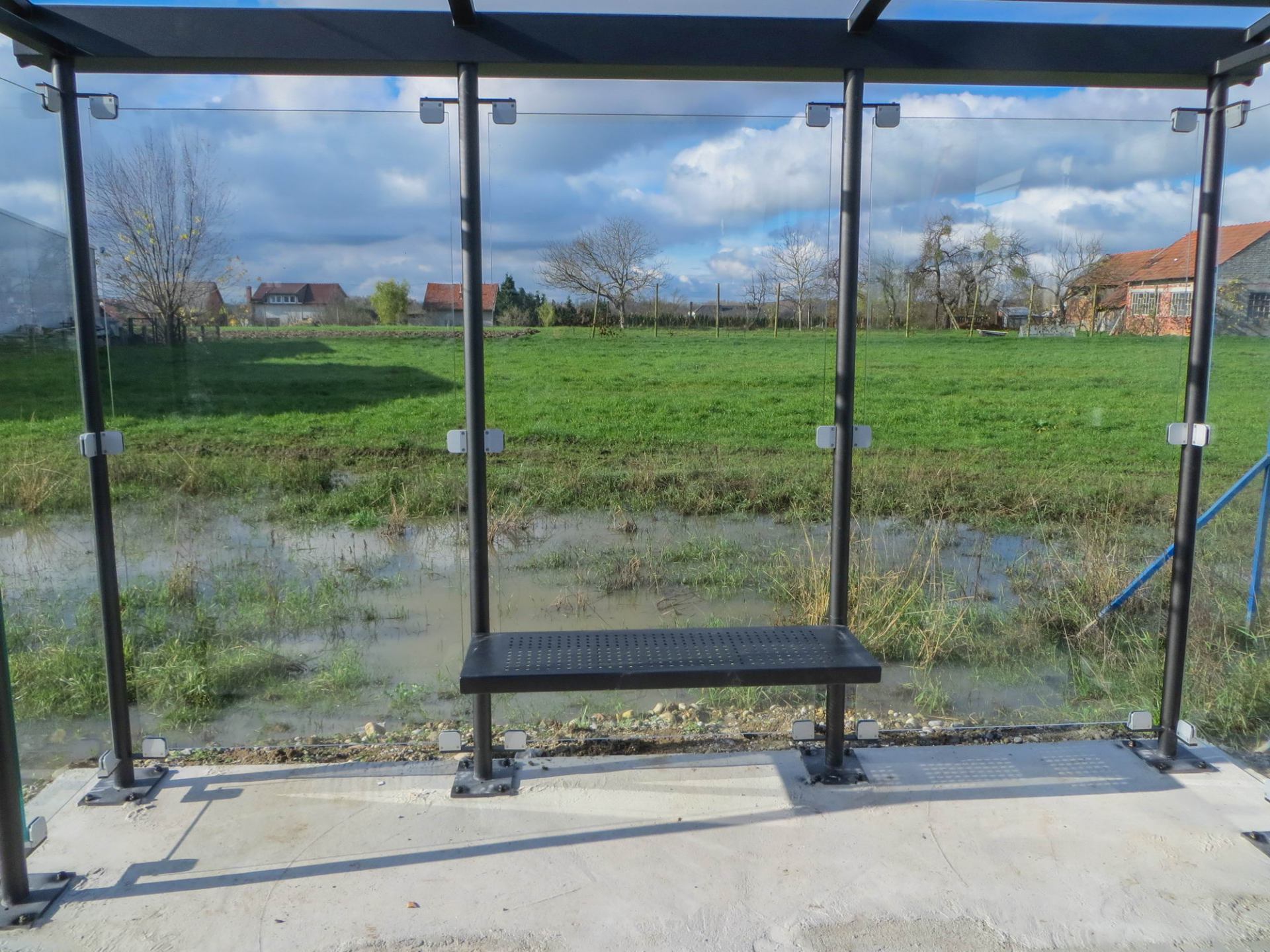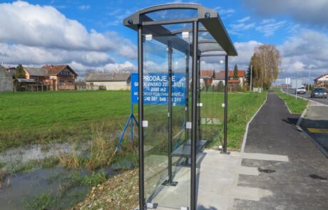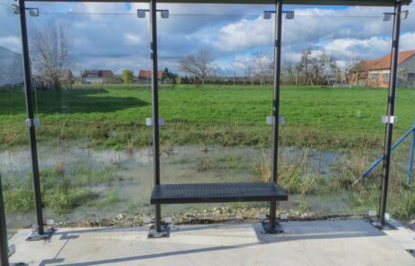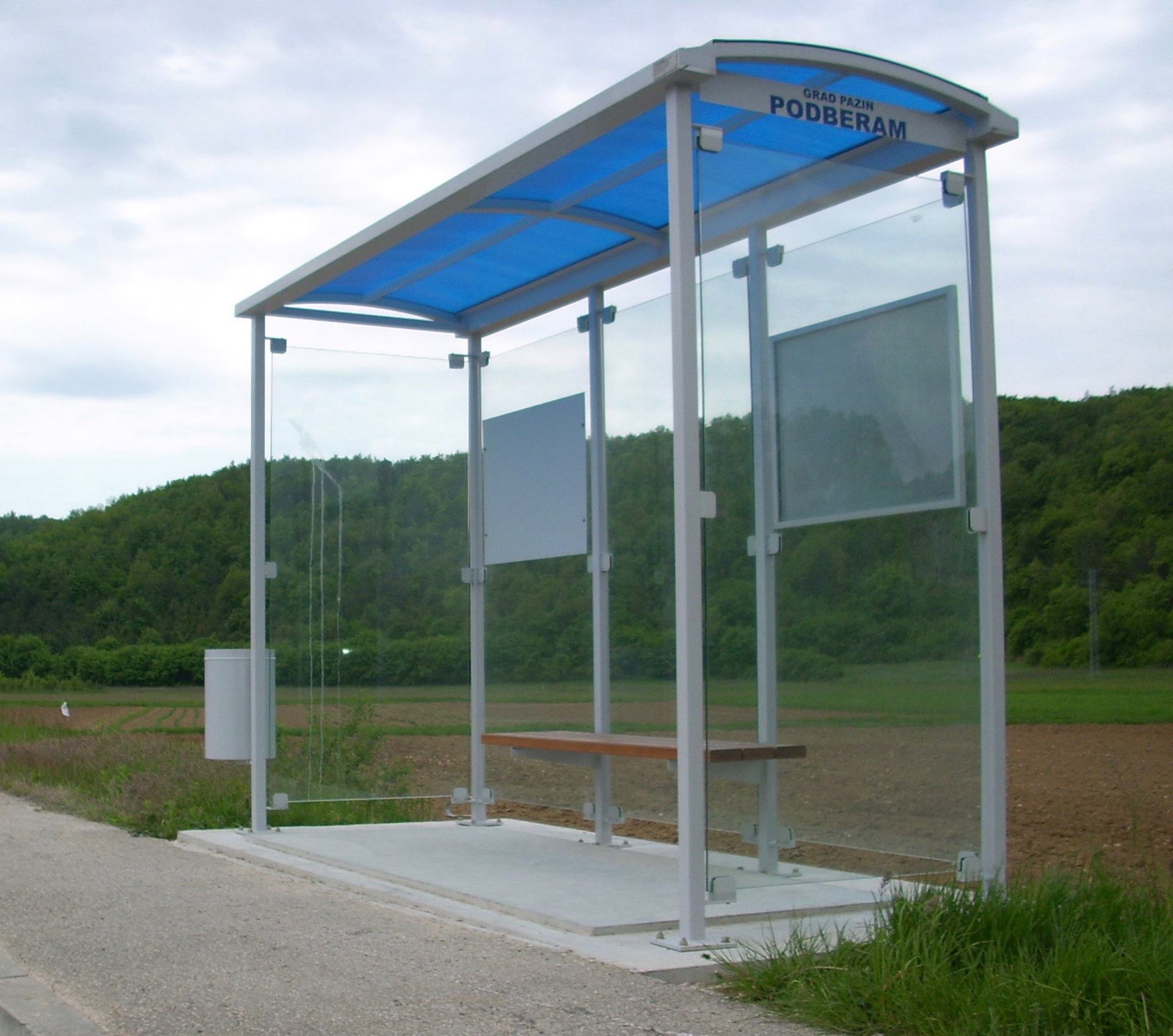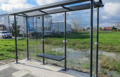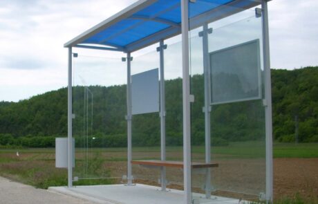 Bus canopy with construction made of hot-dip galvanized steel finished in RAL according to customer preference.