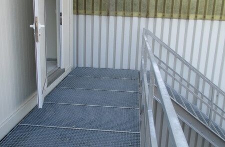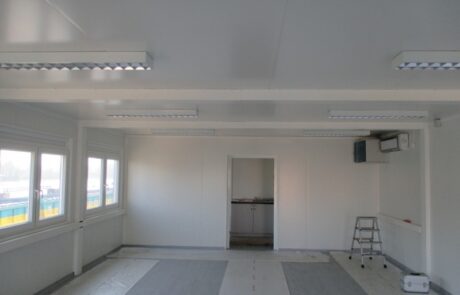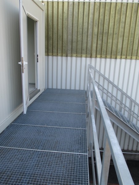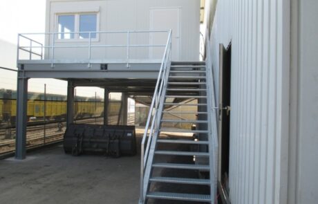EUROmodul hat einen hochisolierten Container komplex hergestellt und zusammengesetzt. Container sind aus einem modifizierten Typ EUROmodul konstruktion EUROSTANDARD gemacht. Der Innenraum ist auf die Bedürfnisse der Küche, Sanitärraum und Tagungsräume angepasst. Die Container sind in der Nähe der Eisenbahnlinie in der Schweiz motiert. Die Treppen und Geländer sind in der Fabrik EUROmodul aus verzinktem Stahl und nach Kundenanforderungen gemacht.