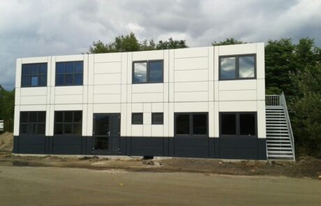 Custom made ( po meri ) inženjering i proizvodnja energetski efikasnog montažnog objekta PREMIUM sa visokim koeficjentom toplotne izolacije, zaštite od buke i vatrootpornosti transportovan je i montiran na lokaciji u Nemačkoj za poznatog klijenta. Modularna zgrada površine 200 m2 ( prizemlje + prvi sprat ) proizvedena je za potrebe upravne zgrade poznatog nemačkog preduzeća za preradu otpada.