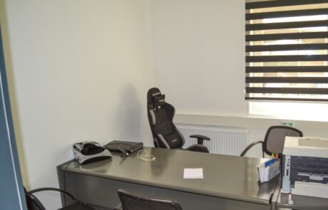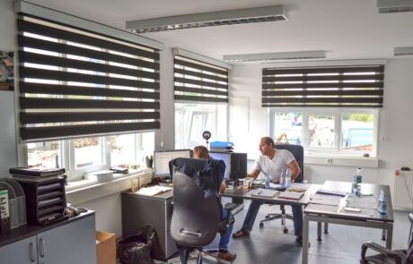 Zgrada je podeljena na kancelarije, kantinu za radnike i sanitarni čvor opremljen tuševima i WC kabinama. Prizemlje se koristi kao mala kancelarija, svlačionica za radnike sa ormarima i sanitarnim čvorom, a prvi sprat je rezervisan za kancelarije uprave. Interijer i fasade u potpunosti su izrađeni u saradnji s klijentom, što znači da smo prilagodili svaki kvadratni metar objekta prema želji klijenta.