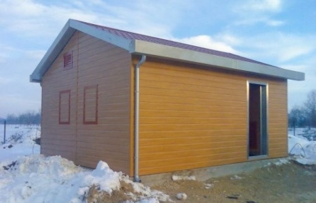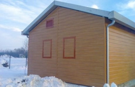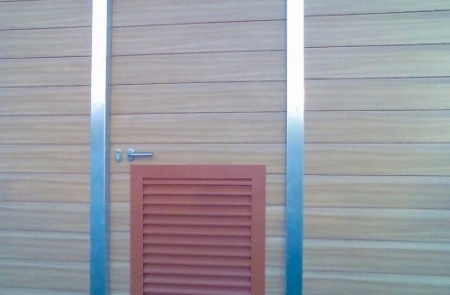 EUROmodul manufactured and installed water pumps containers with imitation wood facade and interior walls made of stainless steel for the placement of plumbing.