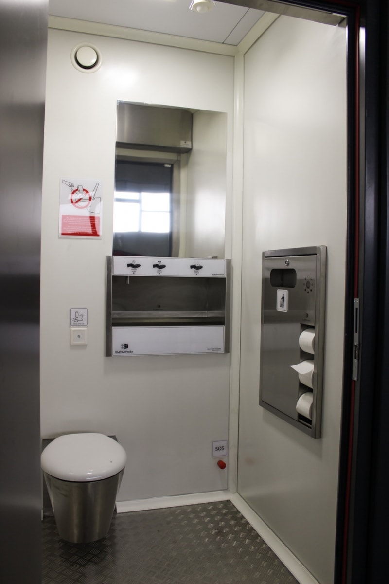 Korisnički prostori javne sanitarije opremljeni su sa vakum sistemom WC školjki i tankovima za tehničku vodu i fekalije. Intergrisani, automatski vakumski sistem pri ispiranju inox WC školjke koristi samo 0,7 litara vode u odnosu na standardno ispiranje koje koristi do 9 litara. Tankovi tehničke vode i fekalije se pune i prazne pomoću spoljnog priključka kroz zaštićeni otvori na fasadi objekta. Vrata otvora otključavaju se specijalnim ključem koje koristi tehničko osoblje za održavanje sanitarnog sistema.