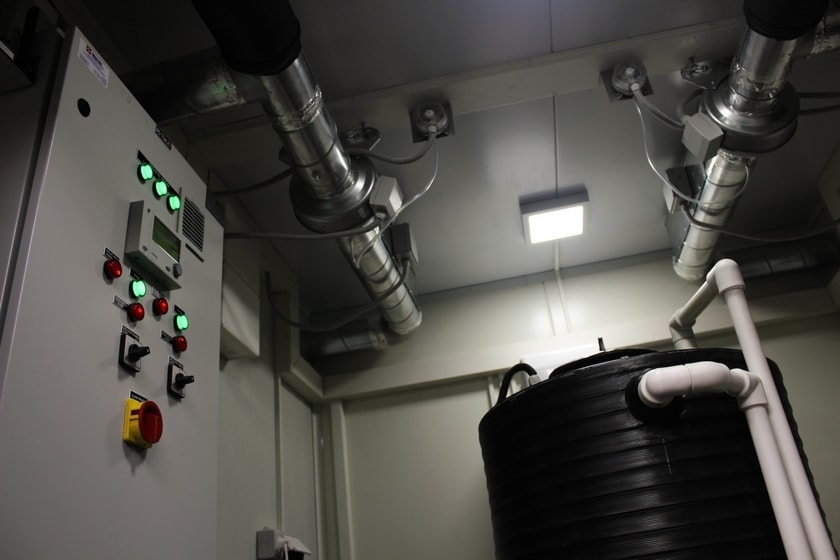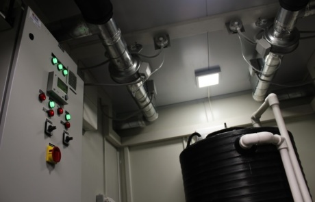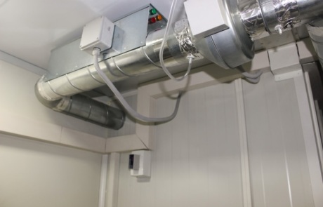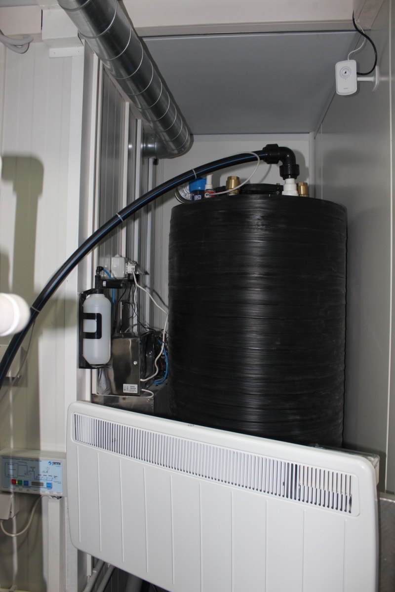 Grejanje je izrađeno prema EUROmodul ECO sistemu grejanja i ventilacije, razvijene 2013. god. za potrebe projekta i proizvodnje 200 komada javnih sanitarija za grad Moskvu. Ispitivanje sistema izvedeno je u uslovima spoljašnje temperature vazduha -30°C, da bi konstantna temperatura tehničkog prostora i sanitarnih kabina iznosila +14°C.