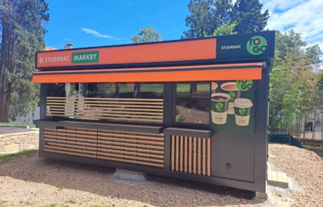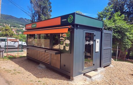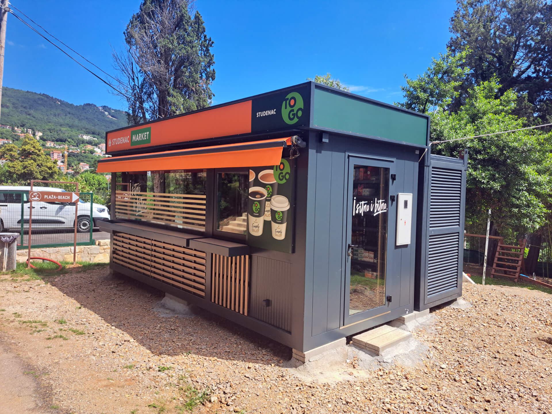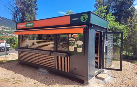 For our customer we have produced module grocery stores mainly for tourist sites. Besides the groceries they dispose of fridges and coffee machines.