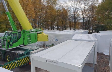 Svi moduli u proizvedeni u roku kraćem od 60 dana i namontirani na lokaciji u roku od 7 dana. Zahvaljujući svom švajcarskom partneru, EUROmodul je u mogućnosti da ponudi modularne objekte po sistemu ‘ključ u ruke’ zajedno sa pripremom temelja, isporukom i montažom na lokaciji.