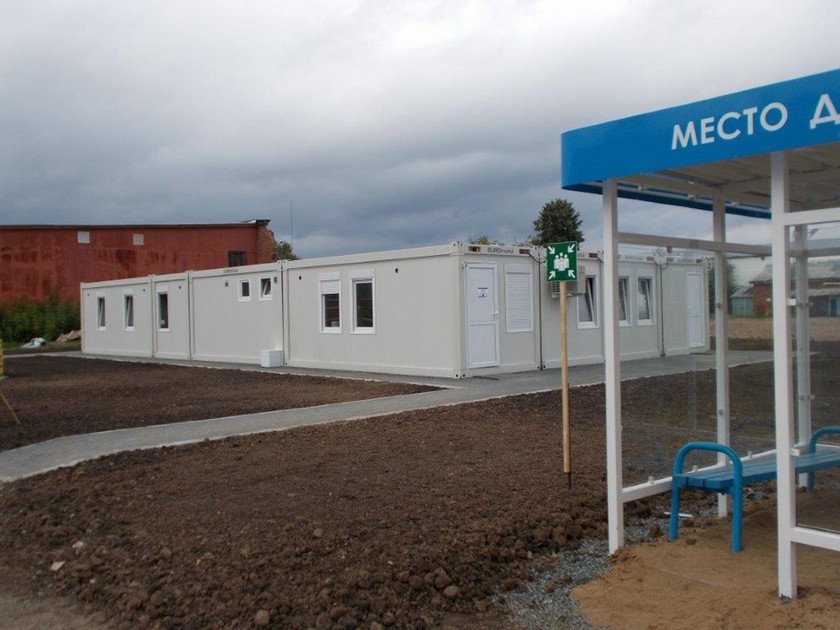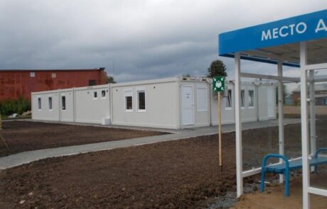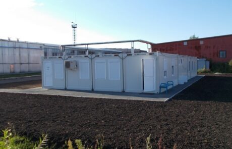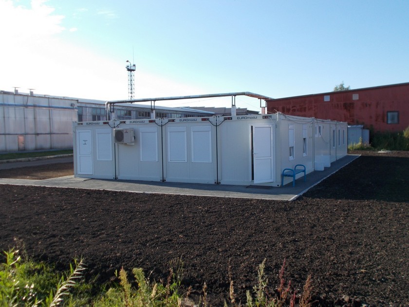 Projektovali smo i proizveli montažni objekat dimenzija 20 m x 10 m, sastavljen od 16 standardnih kancelarijskih kontejnera za potrebe kompanije IKEA u Rusiji, područje Kirovske Oblasti u mestu Novaya Vyatka.