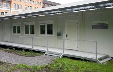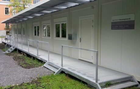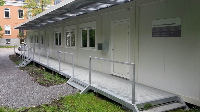 Za potrebe jedne od najpoznatijih Švajcarskih bolnica u St. Gallen-u, EUROmodul je projektovao, proizveo i montirao custom made (izrada po meri) montažni objekat dimenzija 25m x 6m sastavljen od kontejnera prilagođenih specifikaciji po zahtevu kupca. Unutrašnjost se sastoji od tehničkih prostorija,sanitarnog prostora i mini-kuhinje. Zbog zahteva i diskrecije klijenta, slike HI-TECH unutrašnjosti nismo u mogućnosti objaviti.