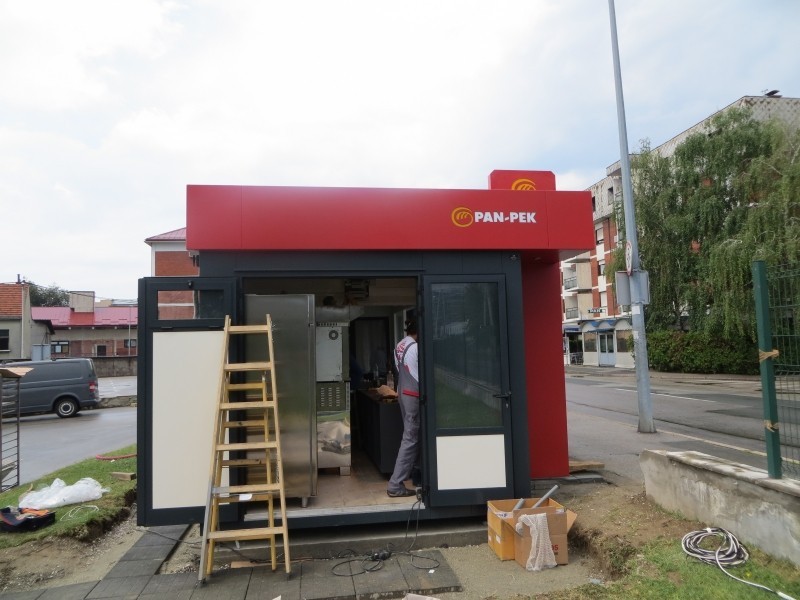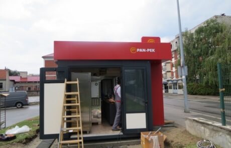 EUROmodul produced a series of kiosks for PAN-PEK company as individual project. Kiosks are connected on the location during installation and make inner space as a whole with the maximum utilization of interior space usage. Kiosks will be used as sell points for PAN-PEK food products.