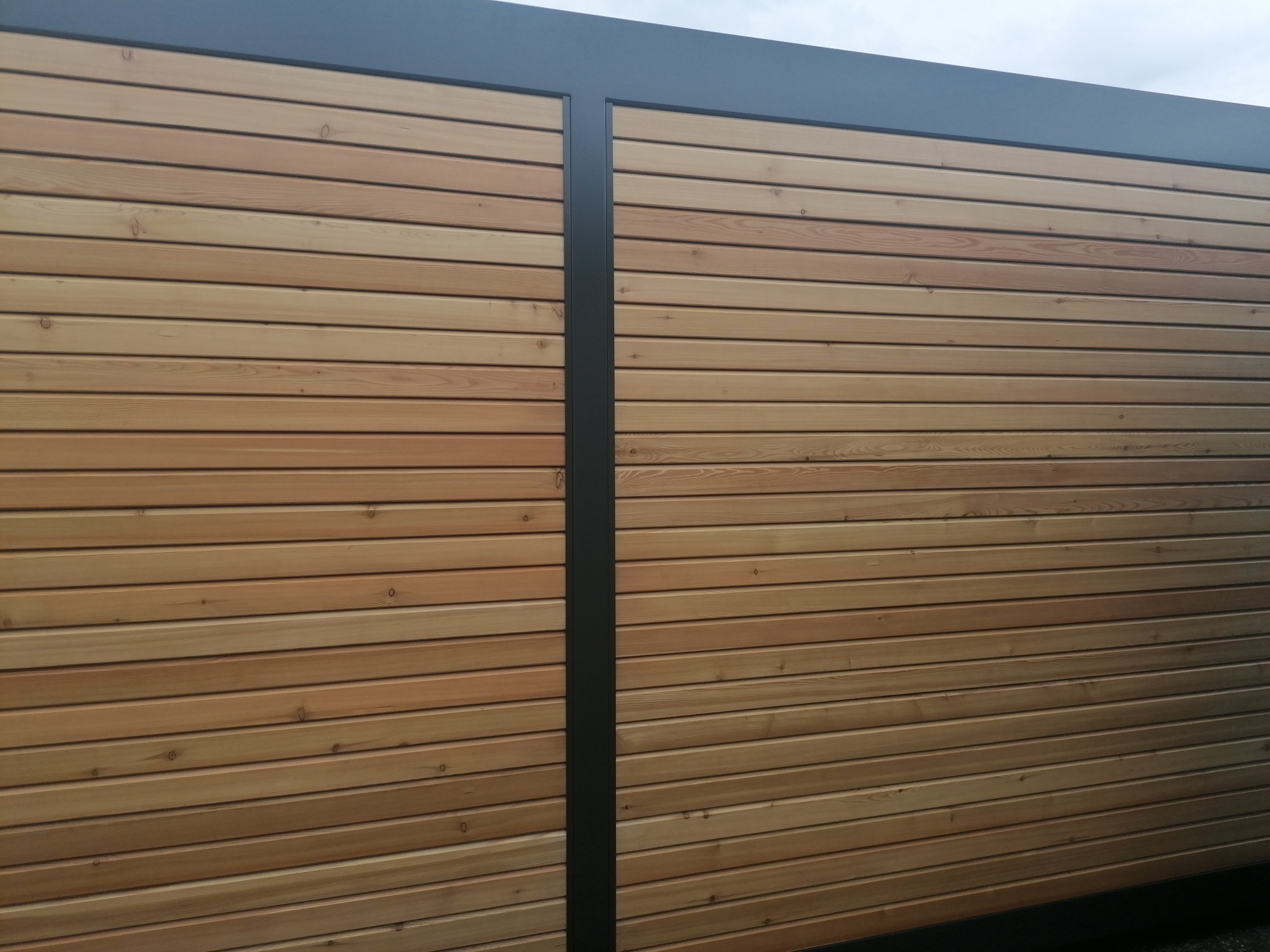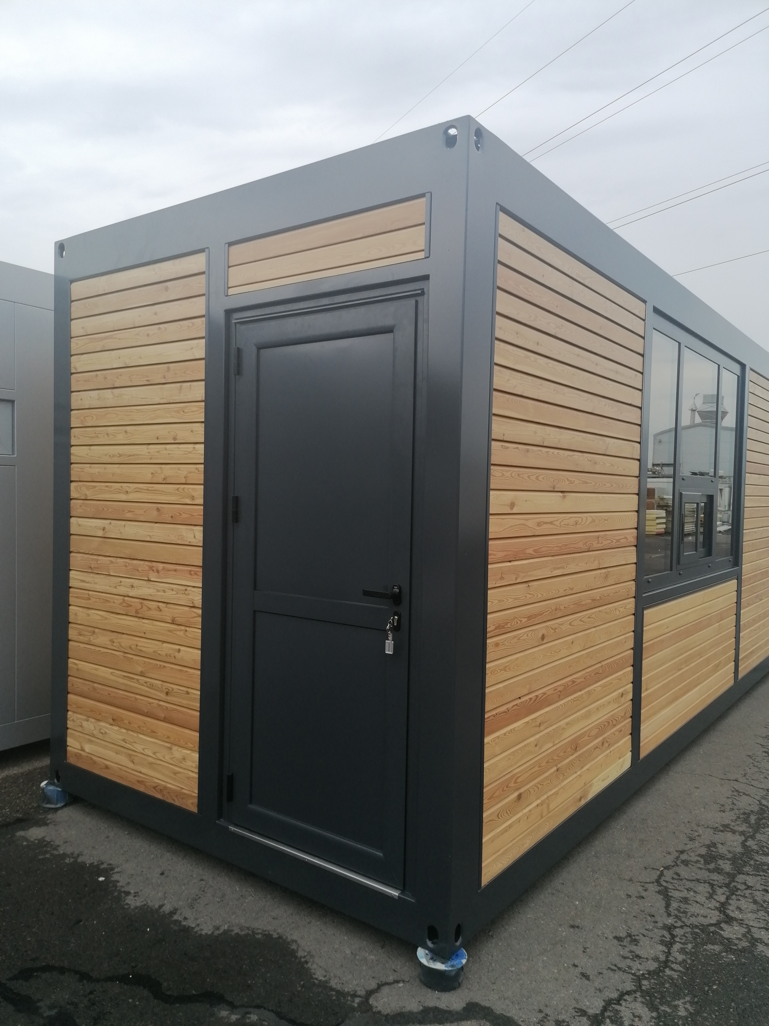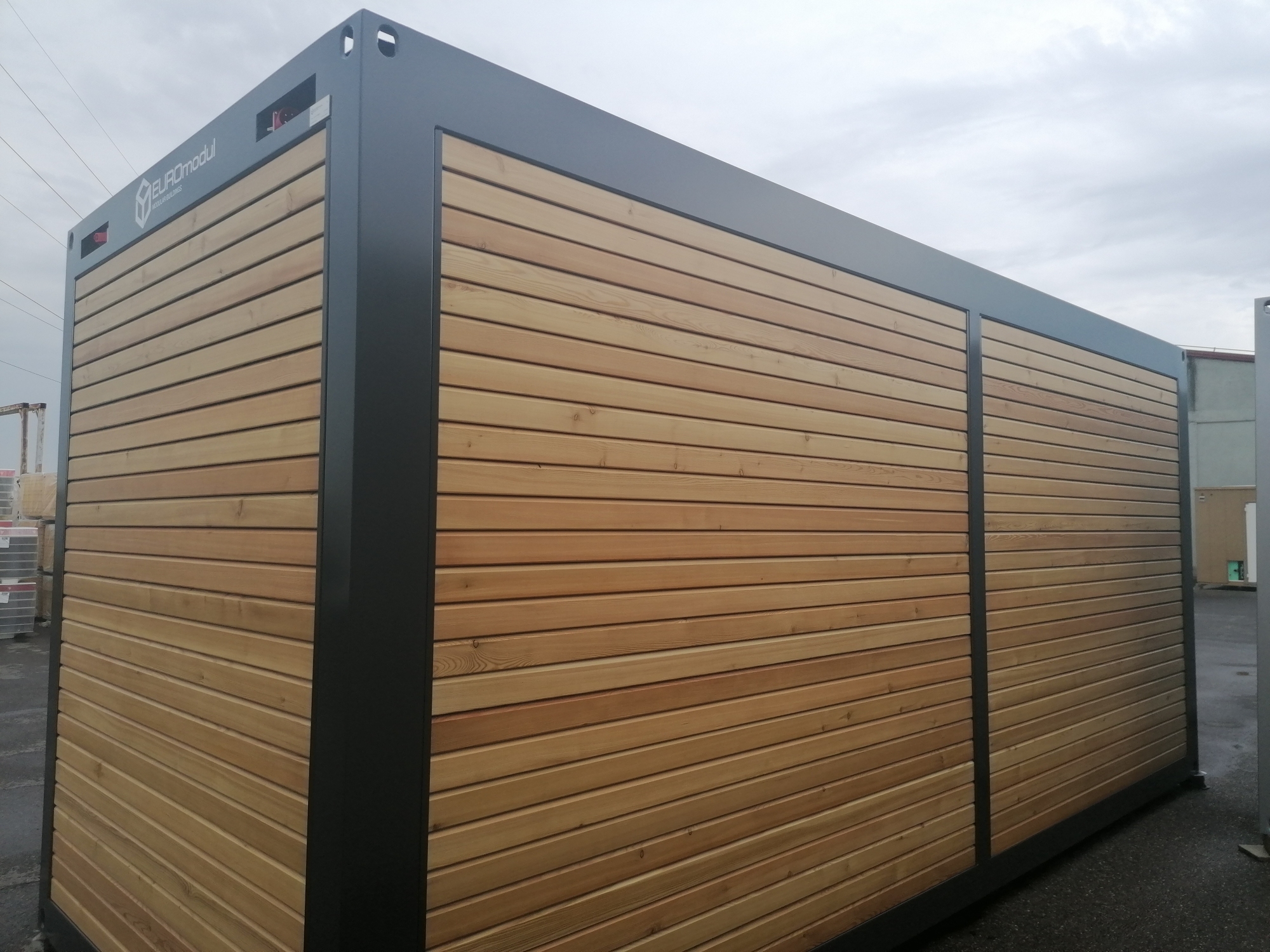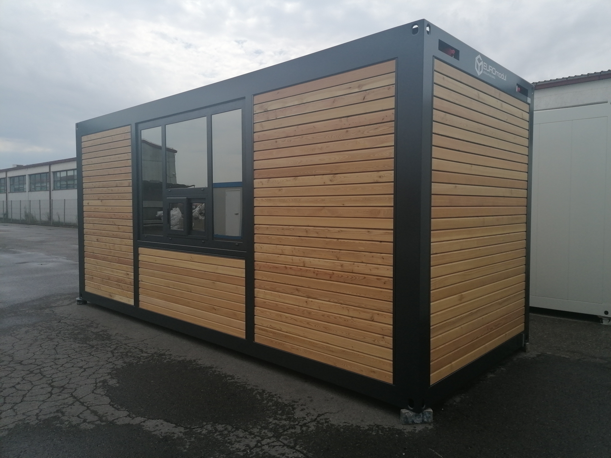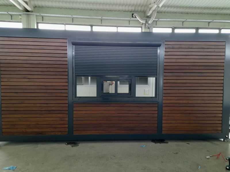 EUROmodul portirnice pored standardnog izvođenja od čelične pocinkovane konstrukcije i sendvič panela često dodatno opremamo sa drvenom fasadom, kako bi pored funkcionalnog zadovoljavale i estetske kriterijume kupca. Ovaj tip se najčešće montira pored reprezentativnih objekata pa su često i dimenzije prilagođenje boravku većeg broja osoblja.