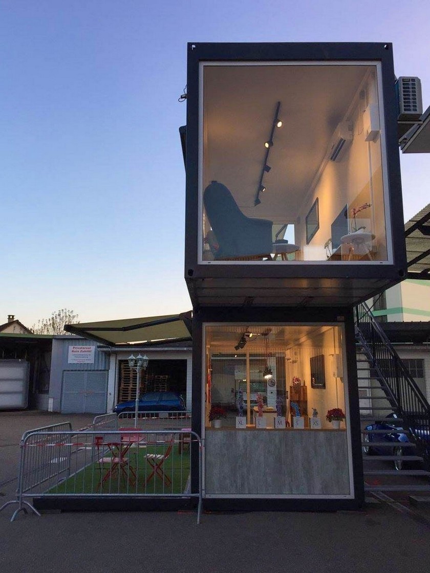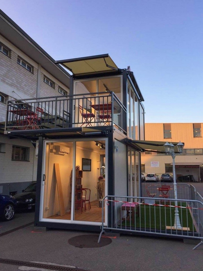 Uz donji kontejner nalazi se i donji podest koji je delimično natkriven sklopivom nadstrešnicom. Gornjem kontejneru pristupa se preko stepeništa i gornjeg podesta koji ujedno služi i kao terasa. Objekat je napravljen za firmu Swisscom za potrebe prezentacije na raznim eventima.