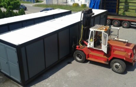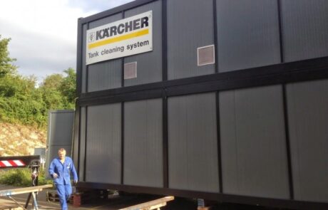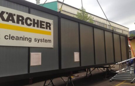 Premium proizvođač opreme za čišnjenje pod visokim pritiskom (mini-wash) iz Nemačke, naručio je po svom zahtevu definisane tehničke 40 stopne (12 metara) kontejnere. EUROmodul je uspešno proizveo i zadovoljio sve tražene tehničke uslove kupca. Kontejneri su projektovani po posebnim zahtevima u pogledu stabilnosti, nosivosti poda i krova.U tehničkim kontejnerima instalirana je mehanička oprema za čišćenje tramvaja i vozova pod viskim pritiskom. Dostava i montaža izvršena je na poznatoj lokaciji u Švajcarskoj.