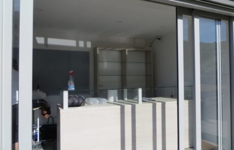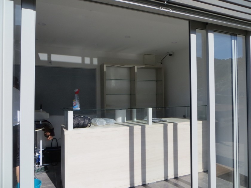 The facility is open on three sides, equipped with a massive counter of well dried white ash with all three sides of the building. It’s closed with zinc roller shutter in RAL 7038 according to the client’s request.