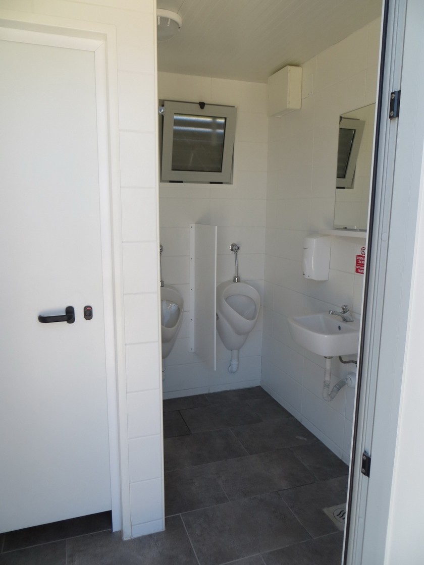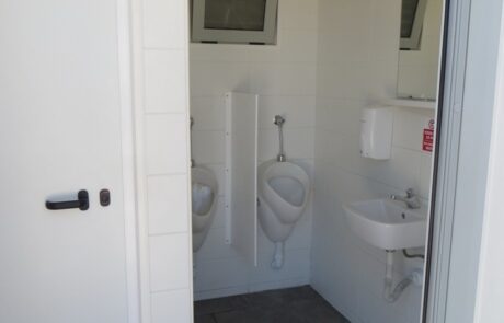 With catering kiosk is supplied also toilet facilities for disabled people, with dimensions of 2.4 x 2.4m, with built-in complete disability equipment in accordance with applicable regulations; Toilet bowl, sink, sloping mirror and handles for disabled stainless steel AISI 316