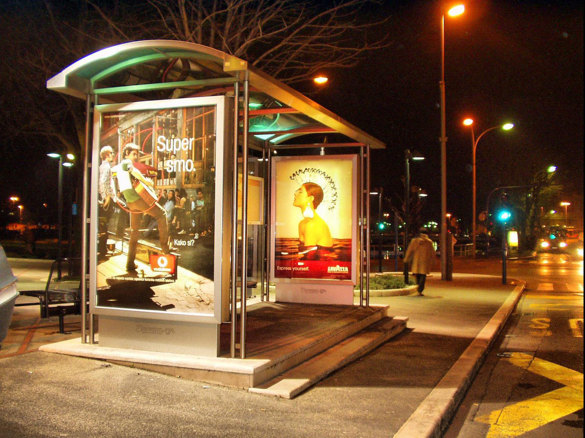 Reklamne vitrine (city light) često sačinjavaju deo autobusnih nadstrešnica pošto se nalaze na frekventnim mestima. Reklamna vitrina može se postaviti umesto bilo kojeg bočnog ili zadnjeg stakla, čime je dužina modula (segment) prilagođen dimenziono.